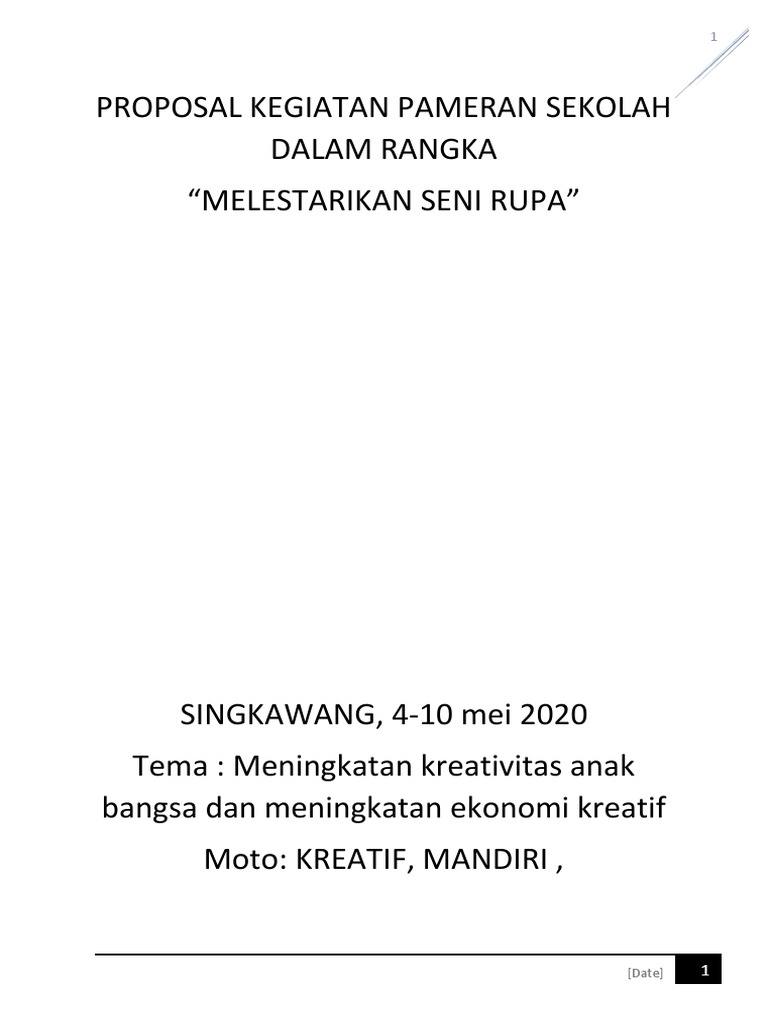25 Trend Terbaru Cara Membuat Proposal Kegiatan Pameran Seni Rupa Anna K Cummings from imgv2-1-f.scribdassets.com Berikut adalah contoh dari proposal pameran dan pergelaran untuk seni budaya proposal pameran dan pagelaran di susun o. Kami berharap kegiatan ini dapat terlaksana dengan baik. Pameran merupakan salah satu kegiatan yang kerap kali dilakukan oleh beberapa penyelengara. Dengan diadakan pameran ini diharapkan pengunjung dapat mengapresiasi karya siswa, sehingga siswa dapat membuat karya yang lebih baik lagi. Tidak hanya dikalangan organisasi saja tapi dilingkungan sekolah dan kampus juga sering memakai ini. Proposal lazimnya dikenal sebagai sebuah dokumen yang berisi rencana kegiatan yang terancang secara sistematis dan terperinci. Proposal penelitian adalah salah satu jenis karya ilmiah yang bertujuan untuk mengusulkan proyek penelitian, baik dalam bidang sains maupun untuk kepentingan akademisi dan berharap agar sponsor mendanai. Kegiatan pameran seni rupa yang akan terkadang, seni bisa membuat seorang penikmatnya merasakan suatu kebahagiaan dan saya sangat berharap pameran ini dapat menjadi contoh yang baik bagi adik maupun kakak kelas.