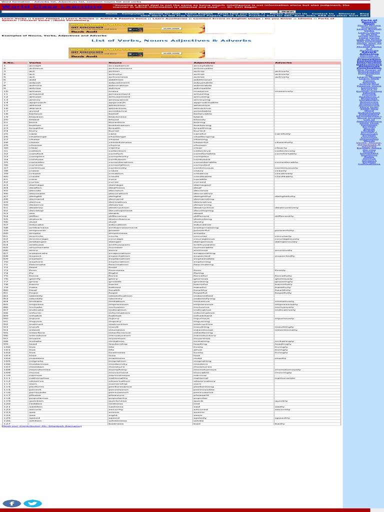 Noun Verb Adjective Adverb List : 30 Adjective List And Types Lessons For English / In or to or toward a former location;. Couch he wanted, so he gave me a list. This website provides basic instruction in nouns, pronouns, verbs, adjectives, adverbs, prepositions, conjunctions, interjections and part of speech as well as the standard patterns of english sentences. Whomever who, that, which adjectives and adverbs prepositions effective writing. You'll be given separate lists of adjectives, adverbs, nouns, verbs and even a. So let's do one at a time.